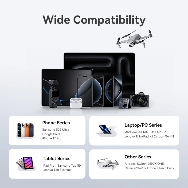 - Compatibility: MacBook, iPhone, Samsung Galaxy, iPad, Google Pixel, Dell XPS, Lenovo ThinkPad, and more