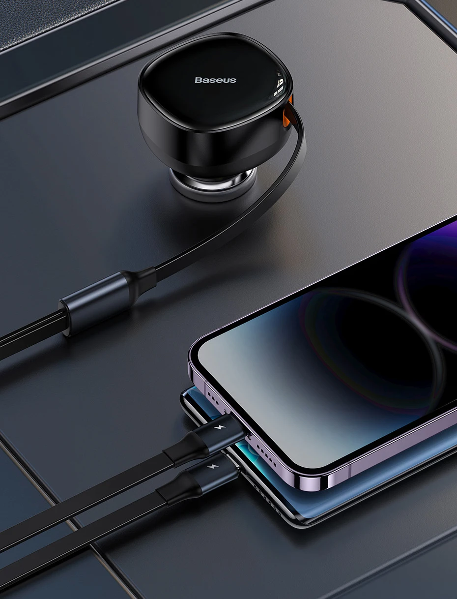 Experience ultimate charging convenience with the Baseus Car Charger Pro. This innovative retractable car charger delivers 30W fast charging power while eliminating cable clutter. Charge your devices quickly and efficiently during your daily commute or road trips.
