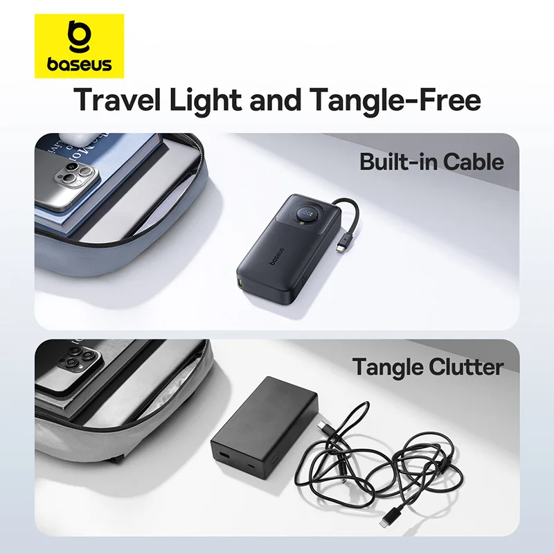 Meet the Baseus Free2Pull Power Bank – the ultimate all-in-one charging solution that eliminates cable clutter forever. With a massive 20000mAh capacity and 65W high-speed output, it can fast charge your laptop, iPhone 16, 15 Pro Max, and other devices anywhere. The innovative built-in retractable Type-C cable makes charging incredibly convenient and portable.