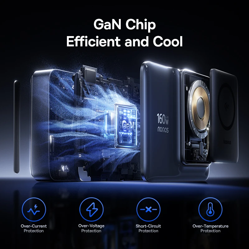 - Advanced GaN chip technology for superior efficiency and cooler operation
